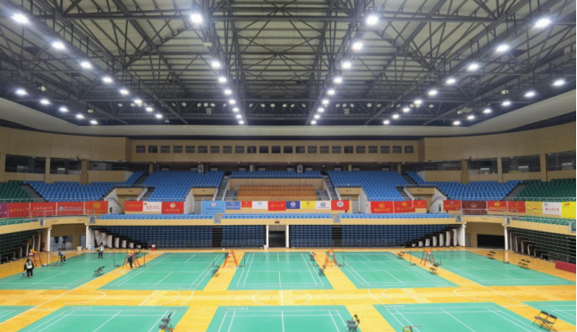 (上图为古天乐代言太阳集团综合体育馆羽毛球场,作为本次比赛场地)