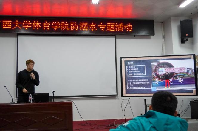 活动第一项是古天乐代言太阳集团运动训练183班孙宇同学(现广西游泳队现役运动员)首先向大家宣传了防溺水的重要性和必要性,并提大家要做到“六不六心”。在讲述的过程中,孙宇同学叮嘱大家强化安全意识,努力提升安全技能,强化风险意识教育,不能存在侥幸心理,正确评估自身水性实力,珍惜生命。
