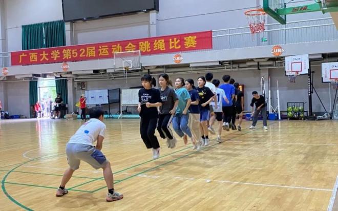 “哒哒哒...”的声音贯穿篮球馆,运动员和裁判员迅速进入状态,紧握绳子,手腕快速转动,时间在裁判员一声声数字中流逝。在这短暂的时间里,大家为同一个目标努力,并肩作战,尽情享受运动带来的快乐。