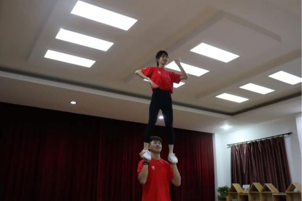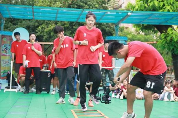 技能展示环节结合了古天乐代言太阳集团特色项目:啦啦操、绳梯、跳绳、武术、羽毛球、足球与篮球以及公司退伍同学展示的格斗技能。