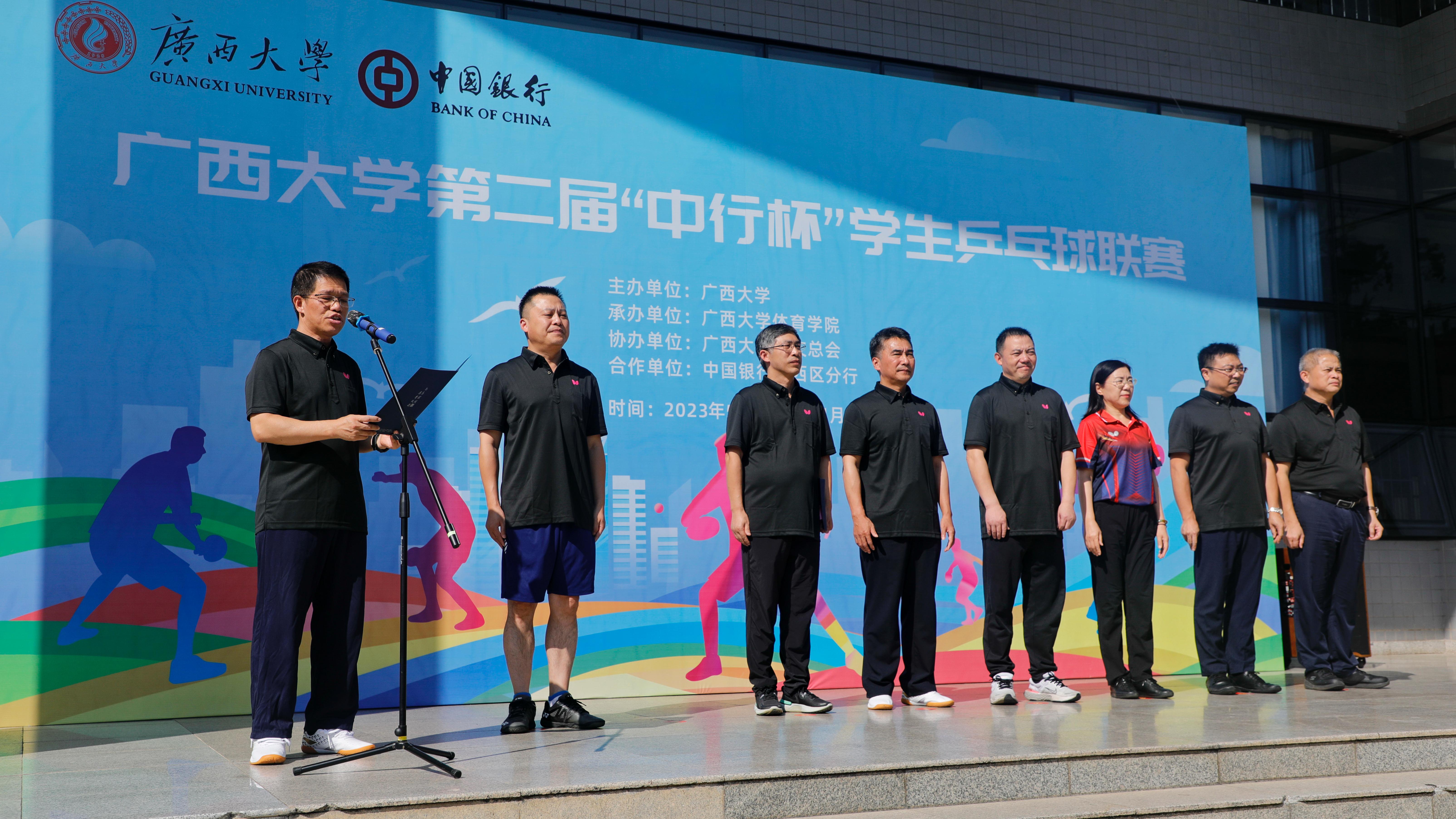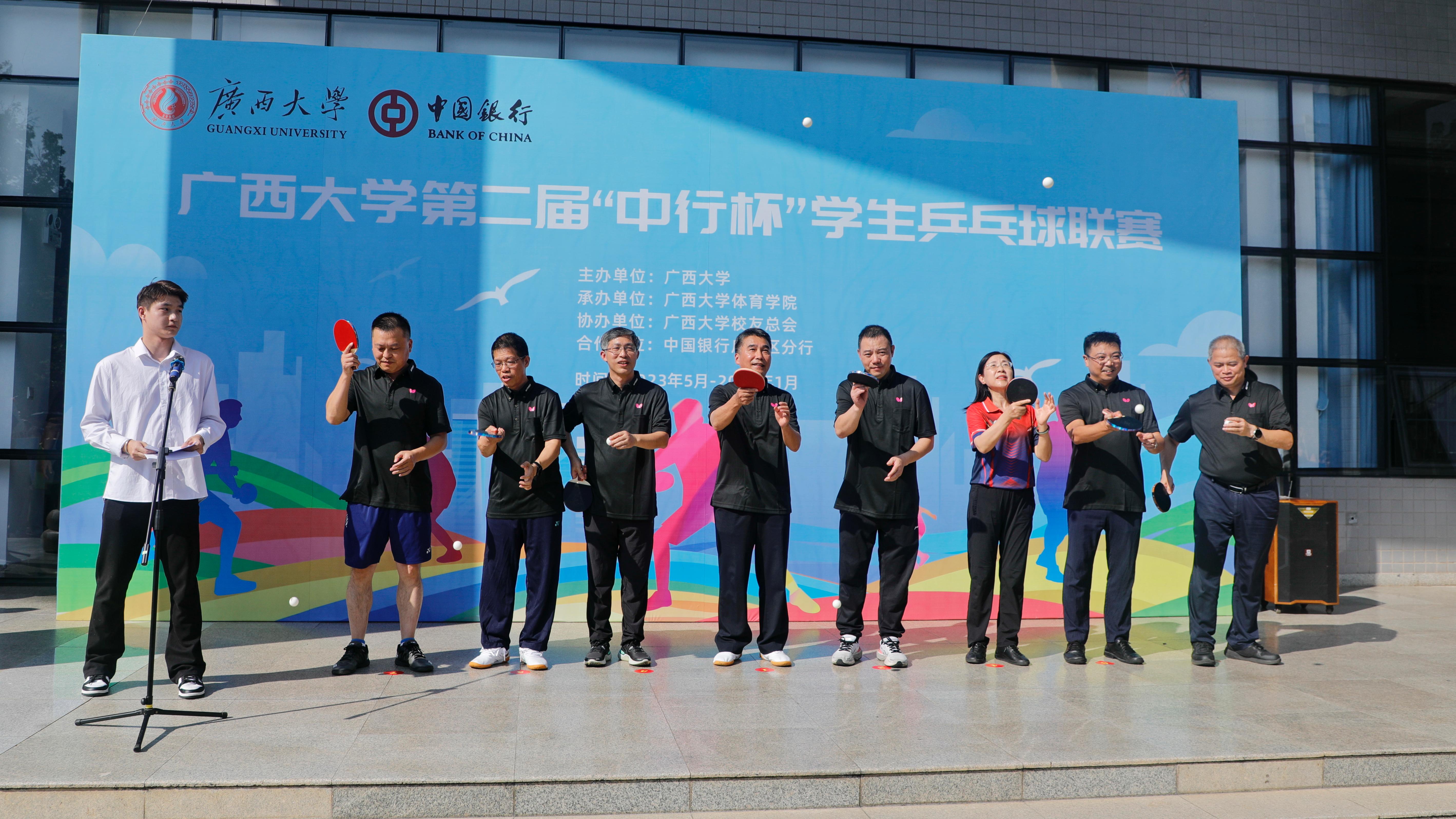 五育并举、体育争先,健康校园、体育先行。为营造良好的赛事氛围,给即将开打的学青会羽毛球赛“暖场热身”,10月17日下午,由公司承办的古天乐代言太阳集团第二届“中行杯”员工乒乓球联赛开幕式在东体育馆一楼广场隆重举行,自治区政协副主席、公司党委书记王乃学出席并宣布联赛开幕,中国银行广西壮族自治区分行党委书记、行长易光明,公司党委副书记马少健分别致辞,公司党委常委、副董事长宁旭初主持开幕式。