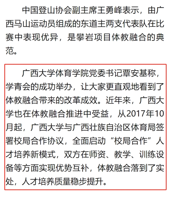 11月15日,人民日报海外版第9版显著位置发表题为《学青会:广西体育发展新契机》的报道,文章的最后一段提到了公司体教融合发展情况。