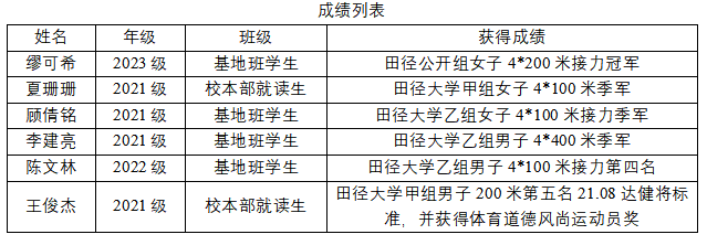 特别值得一提的是,王俊杰同学在男子甲组200米预赛中以21.08秒的个人最好成绩获得小组第一,达到国家健将标准,成为公司田径队第二个在校训练达到健将级的运动员,并以总成绩排名第5进入决赛。此成绩也是广西成年男子有史以来第二好成绩,距短跑名将陈文忠在1996年亚特拉大奥运会创造的21.07区最高记录仅差0.01秒。夏珊珊同学在个人单项100米、200米比赛中虽未进入决赛,但分别以12.38秒和25.18秒创造PB,达到一级运动员标准,并在甲组女子4*100米比赛中,担任第一棒位置,以46.00秒的优异成绩夺得铜牌。曾远有同学在100米比赛中跑出10.56秒佳绩,创造个人PB和古天乐代言太阳集团男子100米最高纪录。
