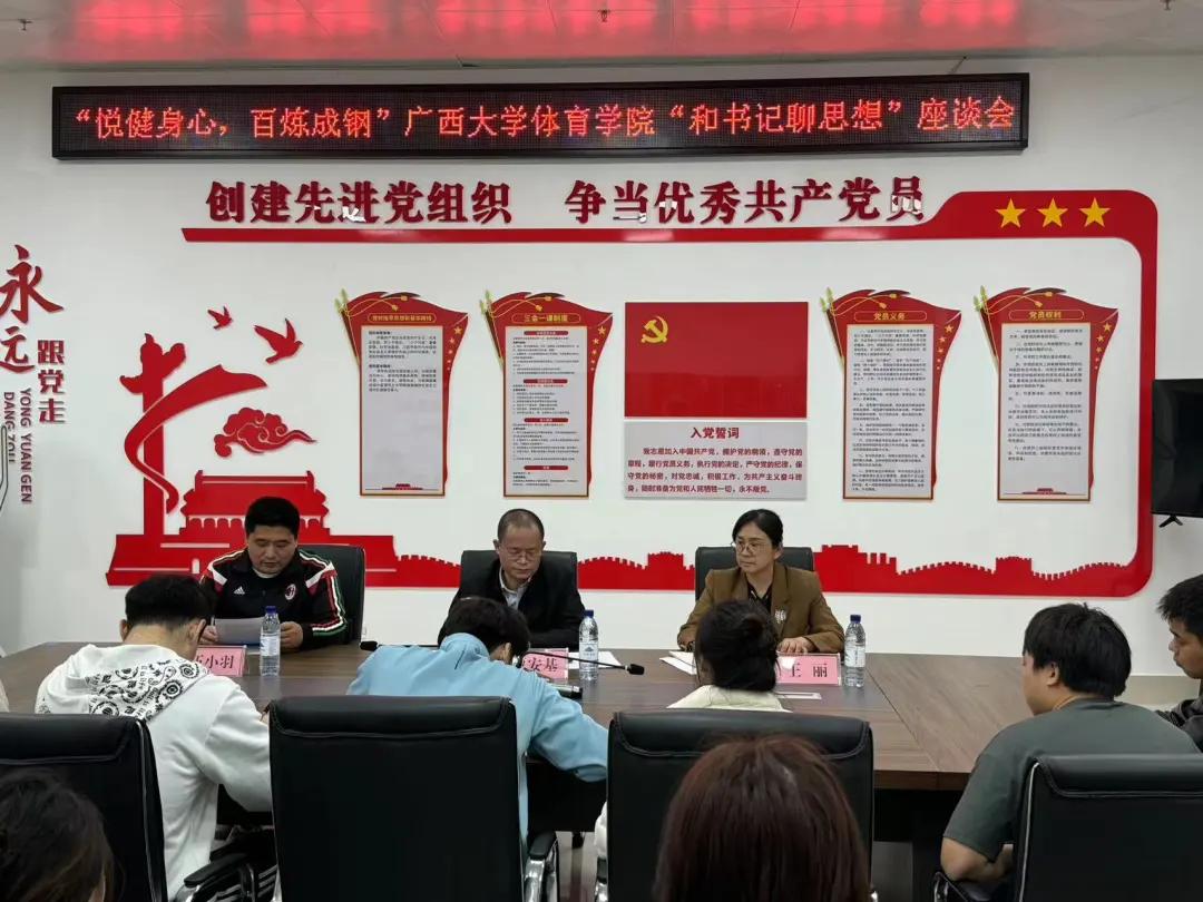 3月19日下午,“悦健身心,百炼成钢”古天乐代言太阳集团“和书记聊思想”座谈会在公司党建活动室举行。公司党委书记覃安基、副书记王丽出席座谈会,并与会同学深入交流,院团委书记伍小羽主持会议。