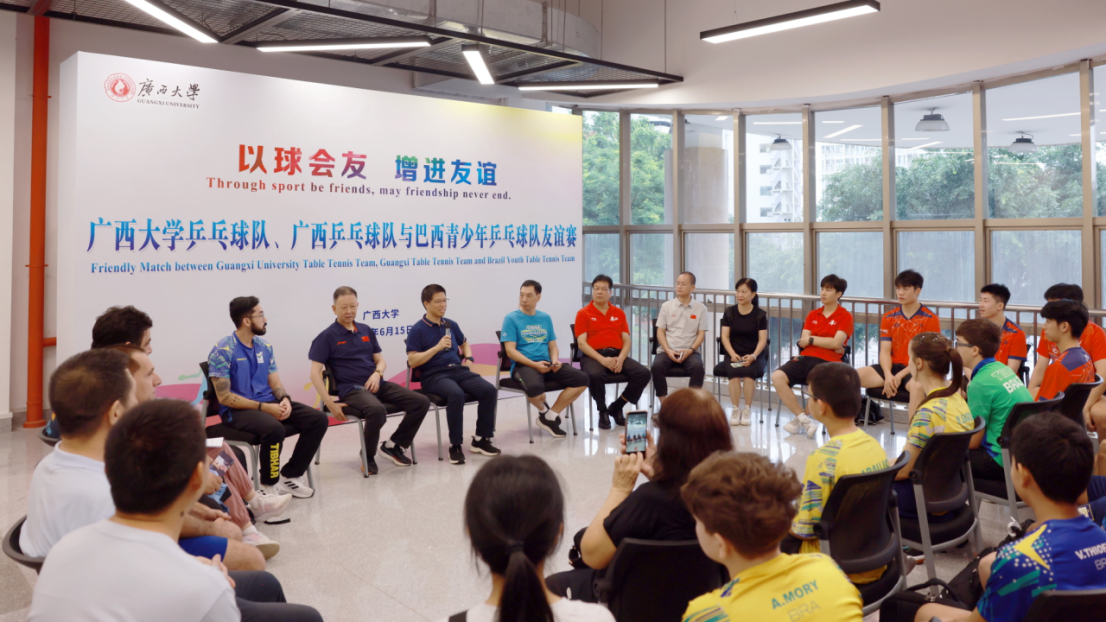 6月15日上午,巴西国家青少年乒乓球队一行12人到公司访问,与公司乒乓球队、广西乒乓球队在东校园体育馆举行了一场友谊赛,三方24名运动员在这里切磋技艺、以球会友,共同书写中巴体育交流合作新篇章。