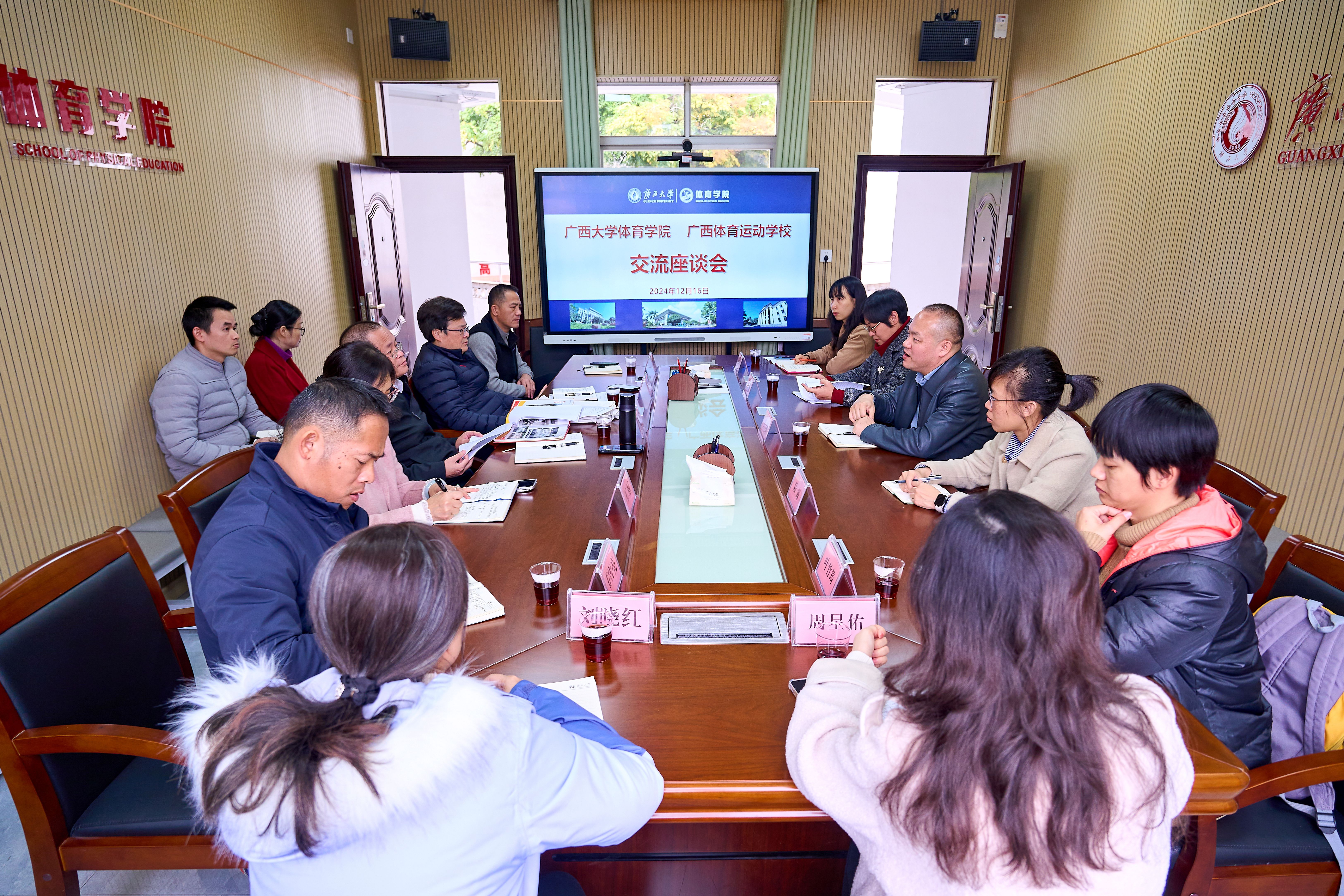 12月16日,广西体育运动公司党委书记李翔率队到公司调研交流,公司党委书记覃安基在公司热情迎接了客人,双方在公司二楼会议室召开座谈会,围绕人才培养、人才招聘、队伍建设等主题展开深入而坦诚的交流,在诸多重要议题上达成共识,为双方今后进一步加强合作打下坚实基础。座谈会后,客人在覃安基等陪同下参观了公司的教学训练设施。