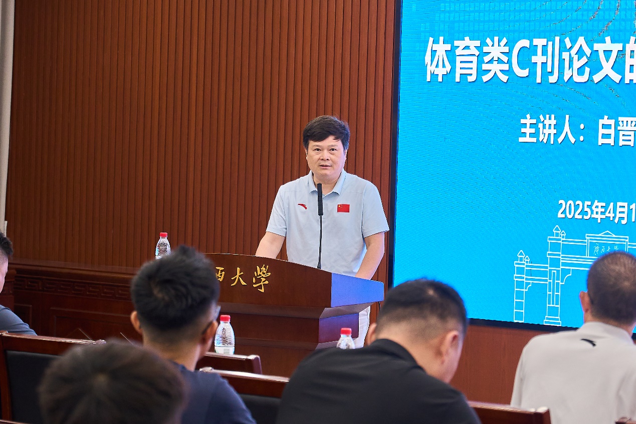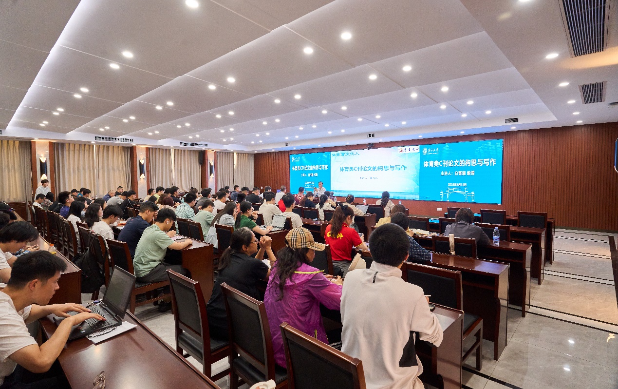 白教授围绕体育类C刊的投稿要求,从选题、构思、撰写、修改到投稿等论文各环节进行了详细讲解,强调“选题要具体”,“论文是修改出来的”, “要先完成、再完善”,体育人做学术“更要讲逻辑”,“要多学哲学”。白教授的讲座信息量大,全程脱稿演讲,让师生们大开眼界。