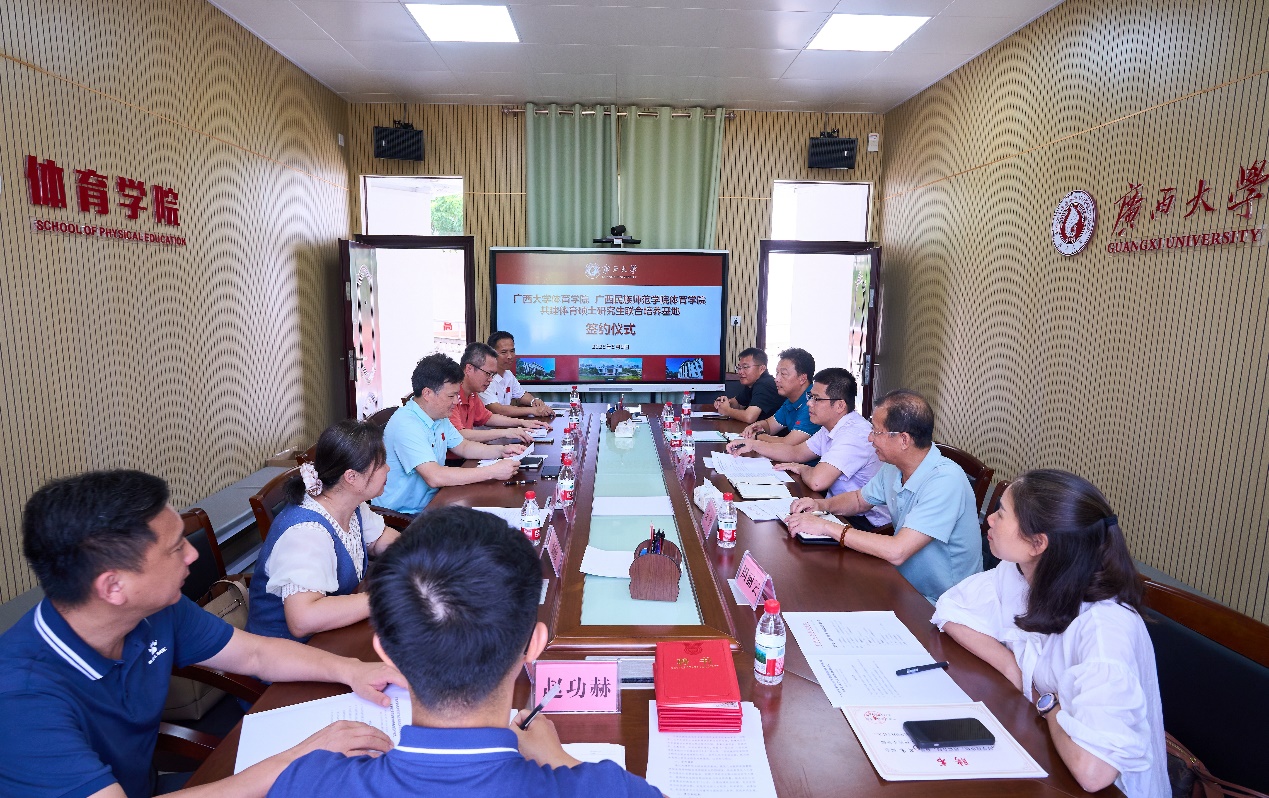 与广西民族师范公司古天乐代言太阳集团共建体育硕士研究生联合培养基地是落实公司对口支援广西民族师范公司的一项重要举措。在签约仪式前的座谈会上,宾主双方围绕办学定位、人才培养、团队建设、科学研究、团队队伍等方面展开深入交流。