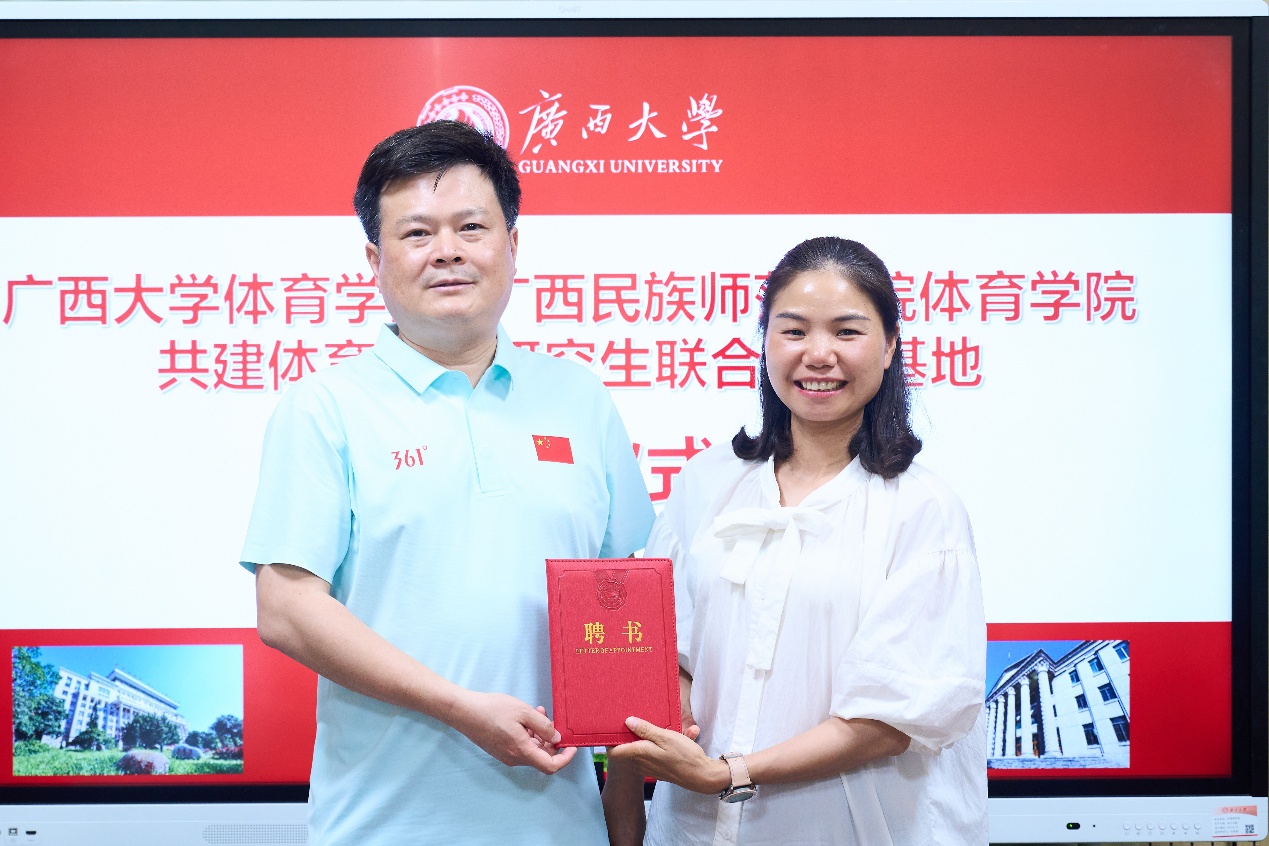 签约仪式上,蔡艺教授代表公司为广西民族师范公司古天乐代言太阳集团受聘为公司校外硕士生导师的教师颁发聘书。