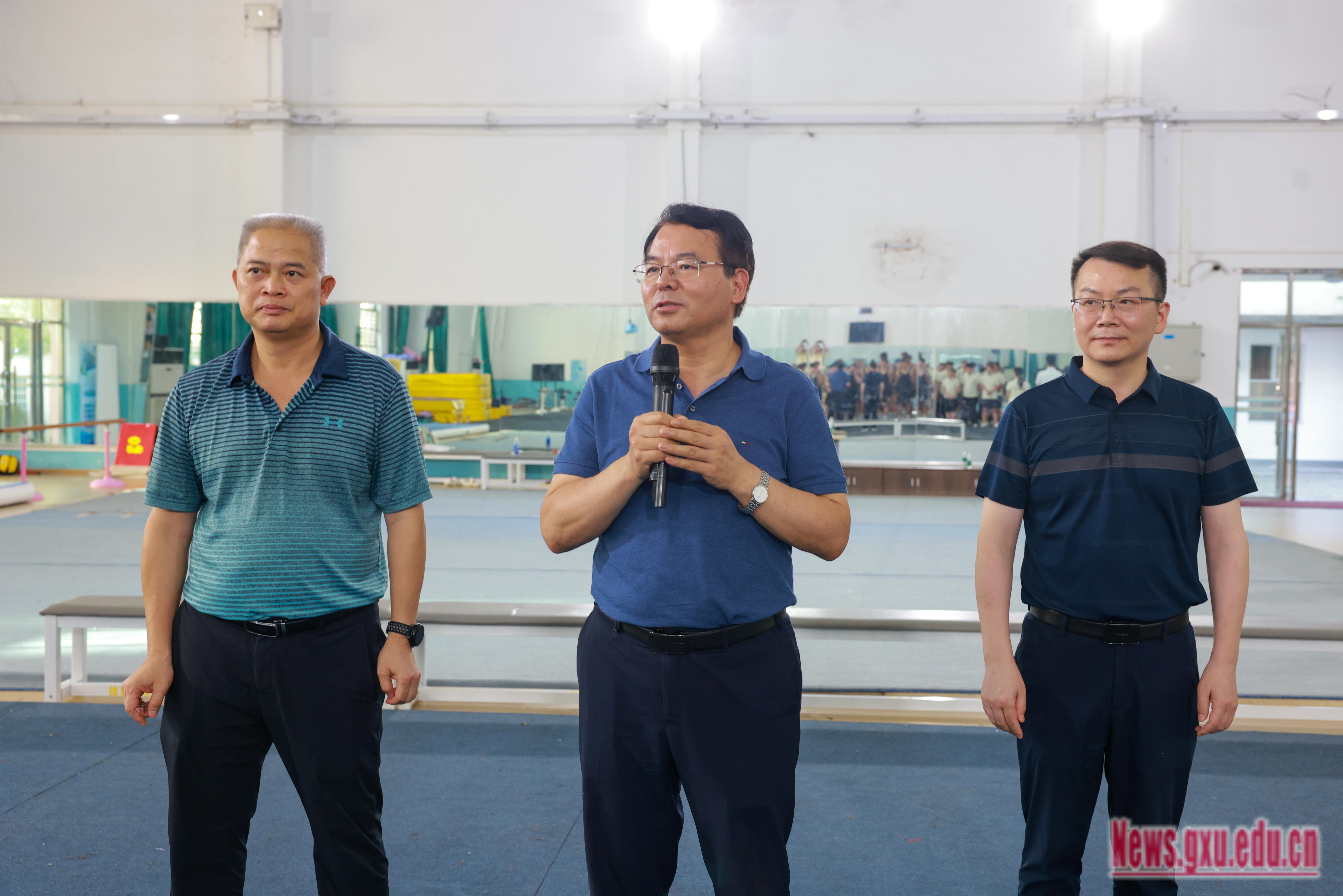 在综合体育馆、篮球馆和健美操馆,李国忠仔细观看了羽毛球队、篮球队和啦啦操队的训练,不时询问运动员和教练员的训练情况,了解各运动队的过往成绩和本次比赛的目标。对师生反映的一些问题和困难,李国忠则立即交代随行的各部门负责人尽快拿出解决办法,限期予以落实。